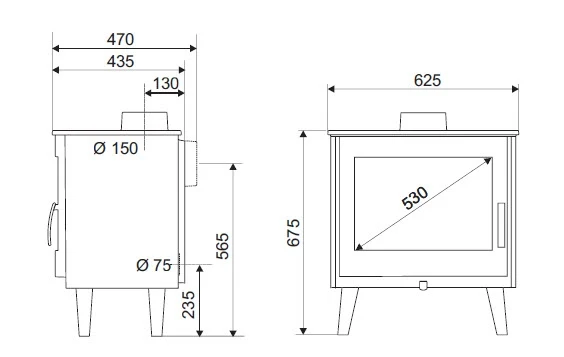 – Gusseiserne Verkleidung an der Rückseite und abnehmbarer Kaminrost aus Gusseisen